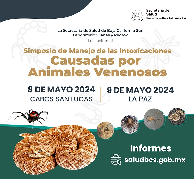 La actividad se efectuará este 8 de mayo en Cabo San Lucas, el 9 del mismo mes en La Paz, con la finalidad de actualizar el conocimiento de las y los profesionales de la salud, tanto del sector público como privado, sobre el abordaje clínico a seguir con pacientes que tengan algún percance con animales que tienen una glándula productora de veneno y la capacidad de inyectarlo a otro ser vivo.