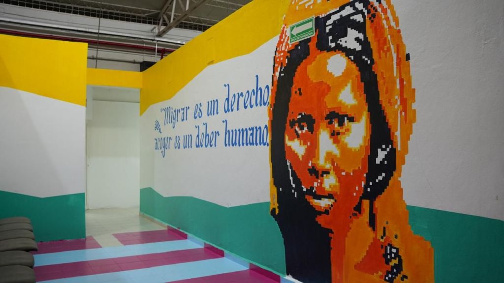 • Para Eunice Rendón, los murales envolventes Caminos y Migraciones buscan cambiar los entornos para convertirlos en lugares coloridos, alegres, amables y humanos, que influyan positivamente en el estado de ánimo de las personas migrantes