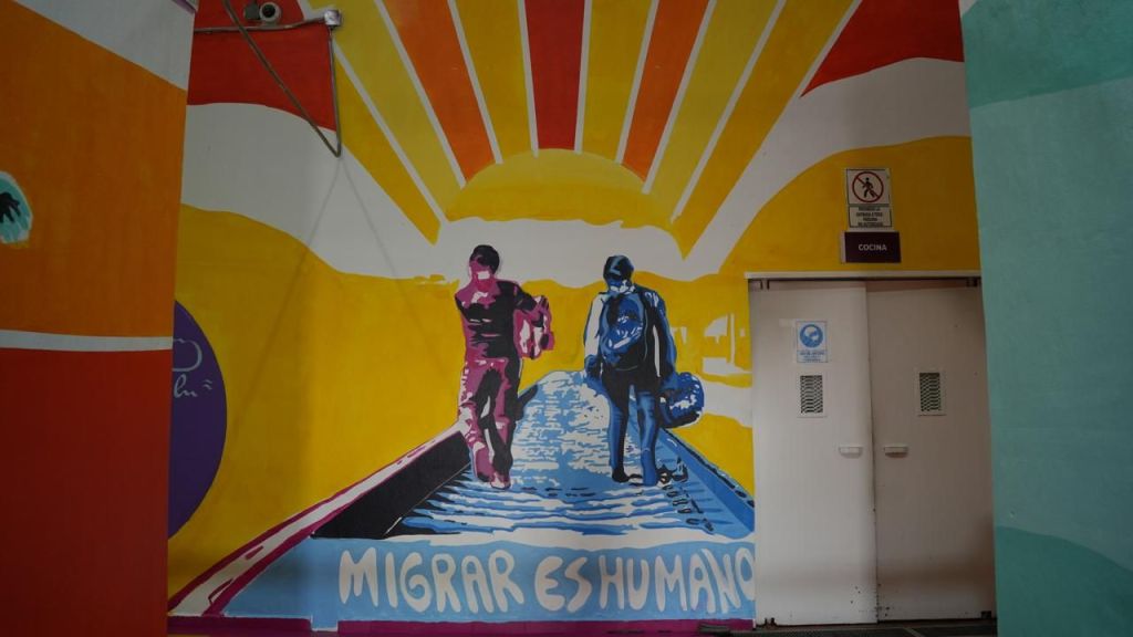 Agradeció la apertura que brindó el INM para transformar los muros de la estación y cambiar los entornos que en su origen fueron pensados como espacios carcelarios, para convertirlos en lugares coloridos, alegres, amables y humanos, que influyan positivamente en el estado de ánimo de las personas migrantes.