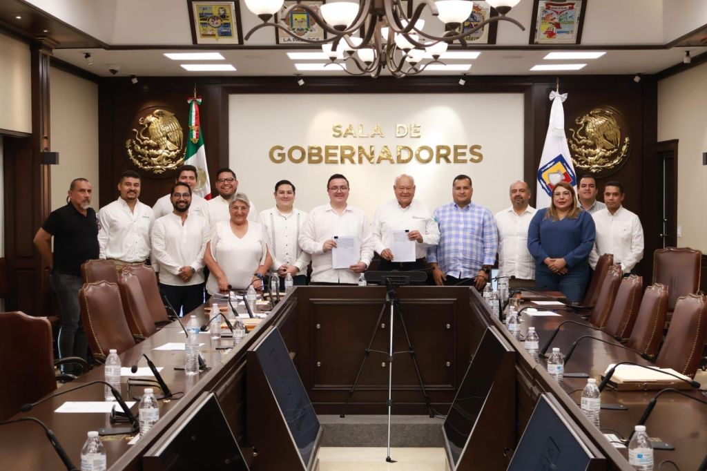 Reunidos en la sala de Gobernadores de Palacio de Gobierno, y ante la presencia de las secretarias de Finanzas, Bertha Montaño y de Planeación Urbana, Infraestructura, Movilidad, Medio Ambiente y Recursos Naturales (SEPUIMM) Carolina Armenta Cervantes, así como del secretario General de Gobierno, Saúl González Núñez, se destacó la importancia de la firma, pues se cumple con el plan de reordenamiento impulsado por el Ejecutivo Federal, dando responsabilidad a las entidades locales para continuar impulsando el desarrollo turístico de los destinos sudcalifornianos.