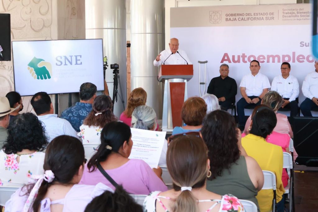 Durante el evento llevado a cabo en Palacio de Gobierno, el mandatario sudcaliforniano y los asistentes a la entrega, fueron informados sobre estos esquemas consistente en dotar de maquinaria, mobiliario o equipo para emprender, así como fortalecer empresas familiares.