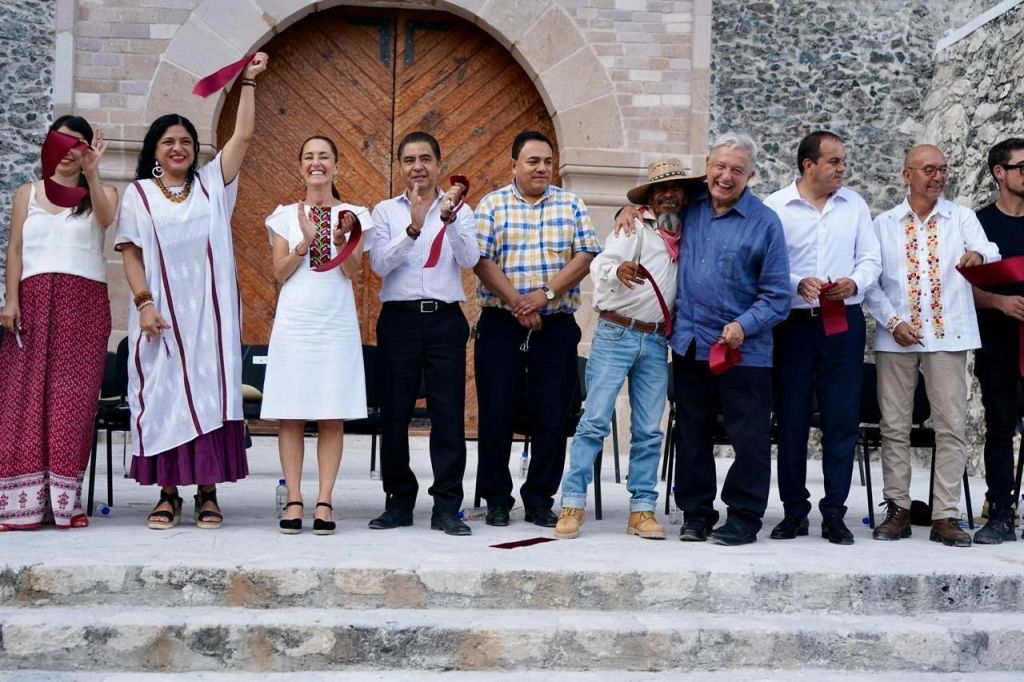 La virtual presidenta electa, Claudia Sheinbaum, informó que son más de 20 entidades recorridas con el presidente con motivo de la transición, y resaltó que detrás de la reconstrucción de los templos dañados por los sismos de 2017 existen mentes, creatividad, profesionalismo e historia, por lo que felicitó a la secretaria de Cultura, Alejandra Frausto Guerrero, y al director general del Instituto Nacional de Antropología e Historia (INAH), Diego Prieto Hernández, quienes encabezaron los trabajos.