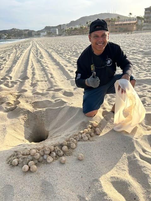 “Importante decir que con el objetivo de detectar de manera inmediata la llegadas de tortugas marinas a las costas de Los Cabos; tan sólo en un día tranquilo se atendieron 9 reportes en un día, al que acudimos frente a la playa que colinda con la conocida zona de la Bocana en la Reserva Ecológica Estatal Estero San José del Cabo, donde se logró recolectar un número importante de huevos de la especie Golfina”, resaltó.