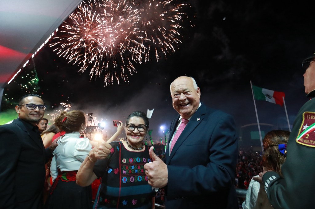 El ejecutivo estatal estuvo acompañado por su esposa, Patricia López Navarro, así como por diversas autoridades civiles y militares, en una velada que unió a la ciudadanía en torno a los valores patrios y el orgullo de ser mexicanas y mexicanos.