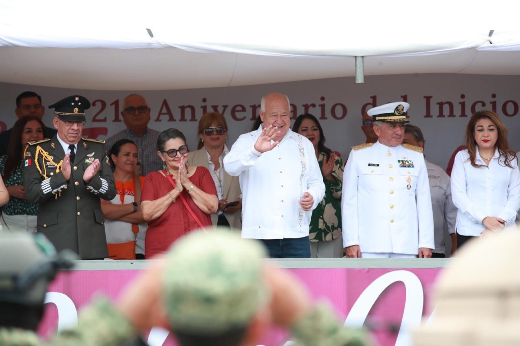 Luego de este acto cívico, el Gobernador se trasladó al templete principal, donde atestiguó el tradicional desfile cívico-militar en el que participaron 67 banderas nacionales y 2 mil 570 estudiantes, personal administrativo de instituciones de educación y del servicio público.