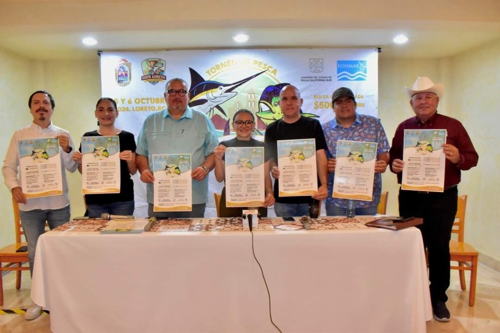 #Loreto, Baja California Sur, a 20 de septiembre de 2024.- El Gobierno del Estado, a través del Fondo para la Protección de los Recursos Marinos (FONMAR) y el ayuntamiento de Loreto, anunciaron en rueda de prensa, el arranque de la copa municipal de fomento a la pesca deportiva «Copa Loreto». «Mar de Campeones», que tendrá como fecha de inicio el torneo “Fundación Loreto 2024” este próximo 5 y 6 de octubre con una bolsa garantizada de 500 mil pesos.