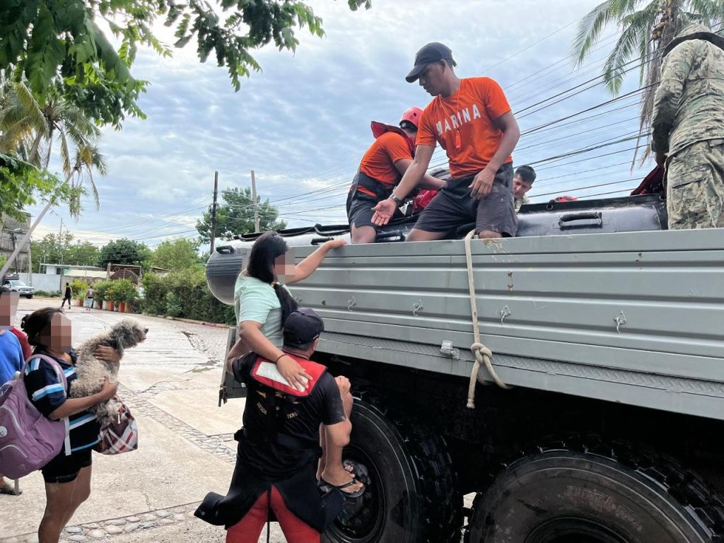 Hasta el momento, personal adscrito a la Décima Segunda Región Naval, con sede en Acapulco, Guerrero, ha evacuado aproximadamente 1,600 personas; asimismo, se continúa con la limpieza de vialidades, levantamiento de árboles y de basura, sumando 32.5 toneladas.