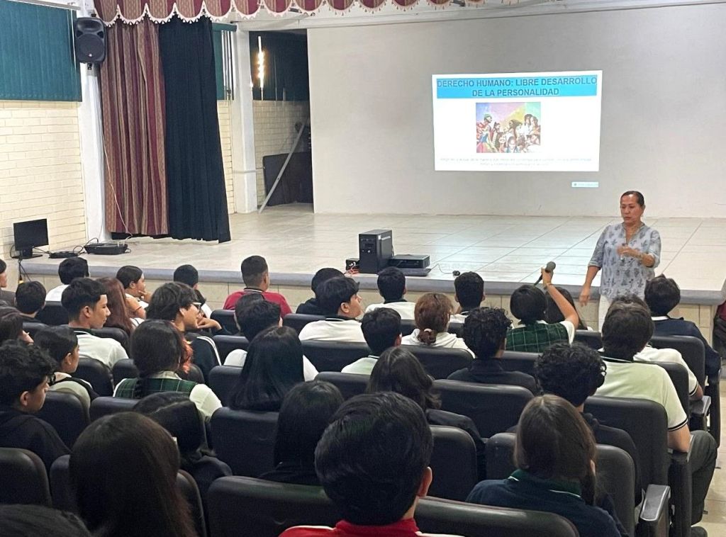 La Paz, Baja California Sur, a 3 de noviembre de 2024.- Un total de mil 200 alumnas y alumnos de nivel medio superior del Colegio de Bachilleres de Baja California Sur (COBACH) de La Paz y Los Cabos, recibieron capacitación enfocada en el tema de “Derecho Humano al Libre Desarrollo de la Personalidad”, informó la titular del Departamento de Derechos Humanos de la Secretaría General de Gobierno, Mayra Messina Vázquez.