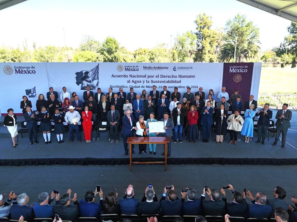 Ciudad de México, a 25 de noviembre de 2024.- Con el firme compromiso con el bienestar de la población y el cuidado del medio ambiente, el gobernador de Baja California Sur, Víctor Manuel Castro Cosío, participó en la firma del Acuerdo Nacional por el Derecho Humano al Agua (ANDHA) y la Sustentabilidad. Este acuerdo tiene como objetivo garantizar la justicia hídrica y el acceso universal al vital líquido en México.