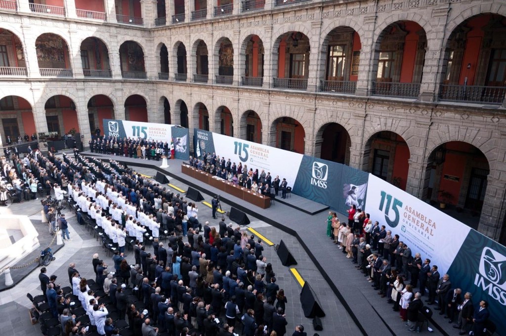 Ciudad de México, a 13 de diciembre 2024.- El Gobernador de Baja California Sur, Víctor Manuel Castro Cosío, asistió a la 115ª Asamblea General Ordinaria del Instituto Mexicano del Seguro Social (IMSS), llevada a cabo en Palacio Nacional. El evento estuvo presidido por la presidenta de México, Claudia Sheinbaum Pardo, y el Director General del Instituto Mexicano del Seguro Social (IMSS), Zoé Robledo.
