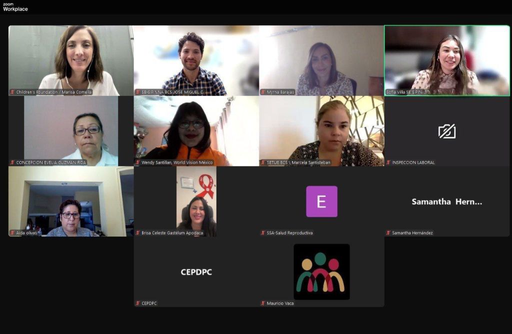 Participaron en este espacio virtual los representantes de las Secretarías de Turismo y Economía, del Trabajo, Bienestar y Desarrollo Social, de Salud y Seguridad Pública, Comisión para Prevenir y Erradicar la Trata de Personas, Secretarías Ejecutivas de SIPINNA de Los Cabos y Loreto, así como la Organización Civil Los Cabos Children Fundation.