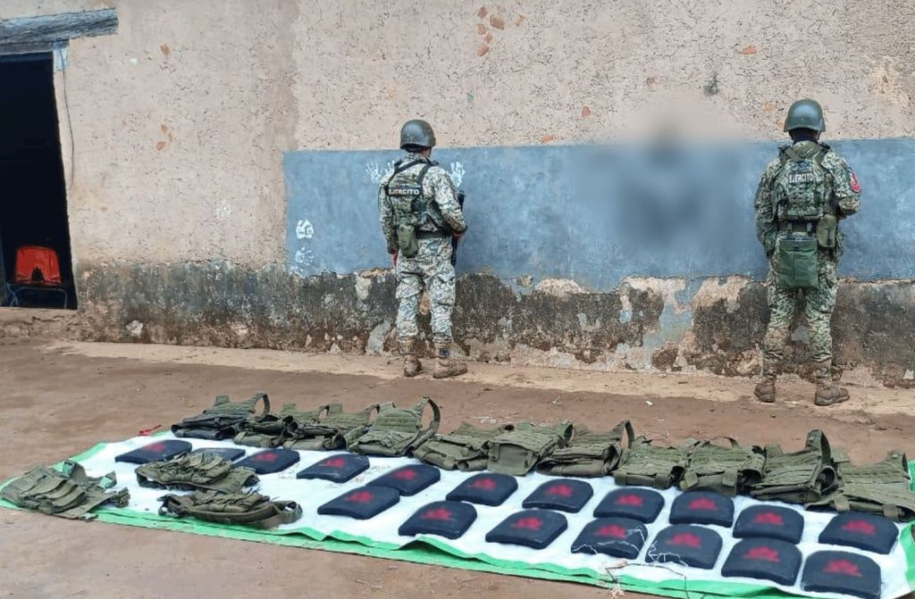 -En el municipio de Pantelhó, al realizar actividades de seguridad y vigilancia, elementos del Ejército Mexicano aseguraron 20 artefactos explosivos improvisados, 14 chalecos tácticos y 18 placas balísticas.