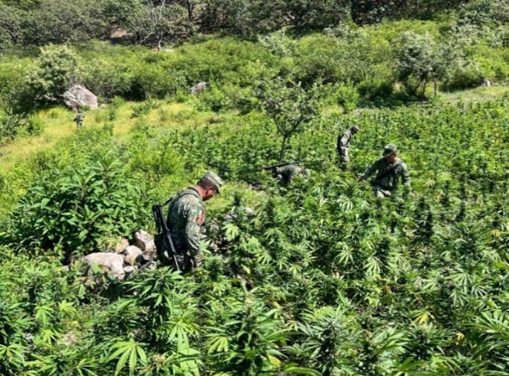 En Sinaloa, Chihuahua, Durango y Guerrero, elementos del Ejército Mexicano destruyeron 10 plantíos de amapola en una hectárea y siete plantíos de marihuana en una hectárea.