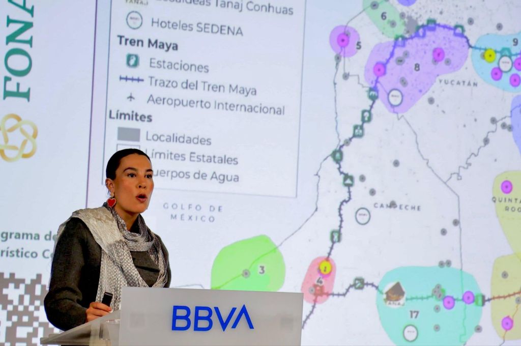 Acompañada por Eduardo Osuna, director general de BBVA México, expuso la relevancia del turismo en México como generador de derrama económica, con un enfoque de redistribución equitativa en la inclusión de las comunidades residentes.