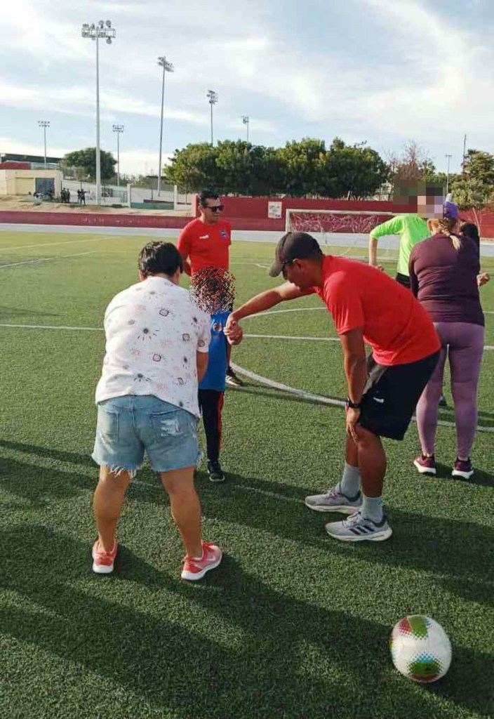 Los Cabos, Baja California Sur.- El programa de deporte inclusivo “Tocando Corazones”, impulsado por el Instituto del Deporte del Municipio de Los Cabos (INDEM), recibió la visita del director técnico del equipo de fútbol Los Cabos United, Edson Antonio Alvarado García y su cuerpo técnico. Los asistentes disfrutaron de dinámicas recreativas y ejercicios de fútbol diseñados para fomentar la integración, la actividad física y la diversión en un ambiente incluyente.