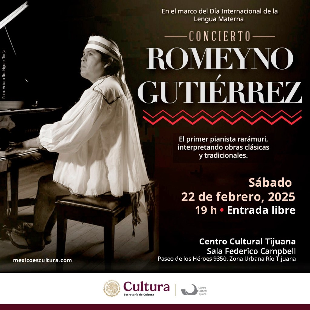 Considerado el primer pianista indígena de América Latina, Romeyno Gutiérrez Luna es un músico ralámuli, cuya historia es un recordatorio del poder de la amistad y los lazos entre dos culturas. En el marco del Día Internacional de la Lengua Materna, el CECUT invita al recital que se llevará a cabo el próximo sábado 22 de febrero de 2025 a las 19:00 h, con acceso gratuito.