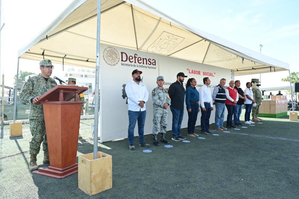 Durante la jornada se ofrecieron servicios de atención médica y odontológica gratuita, suministro de agua potable, distribución de tortillas de maíz, módulos informativos sobre planteles militares y vacantes, corte de cabello y reparación de artículos electrónicos.