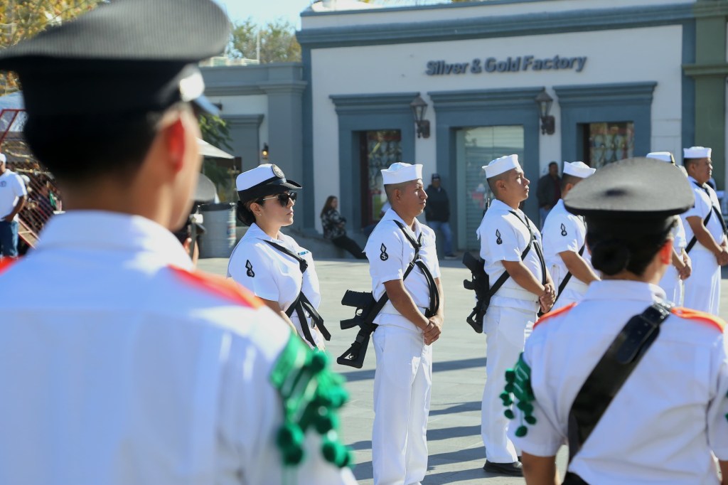 En representación del presidente municipal de Los Cabos, Christian Agúndez Gómez, el secretario general Alberto Rentería Santana dio la bienvenida a los asistentes, destacando la presencia de integrantes del Cabildo, representantes de las fuerzas armadas, directivos municipales y estudiantes del Colegio Ugarte.