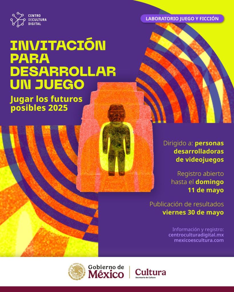 Del 15 de abril al 30 de mayo, las personas desarrolladoras de videojuegos podrán participar en la segunda edición de “Jugar los futuros posibles”, un certamen enfocado en la creación de juegos basados en historias y entornos futuros relacionados con la vida colectiva en México y Latinoamérica. Se premiarán tres propuestas, que recibirán un estímulo económico y acompañamiento especializado para su desarrollo.