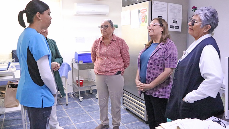 En este recorrido, durante el que dialogó con las compañeras médicas y enfermeras del centro de salud, las convocó a seguir dando su mayor esfuerzo para proteger el bienestar de las familias de la comunidad y de localidades aledañas, al proporcionar servicios preventivos como es la aplicación de vacunas del esquema básico que permite reforzar las defensas naturales de niñas y niños contra enfermedades como el sarampión y la tosferina.