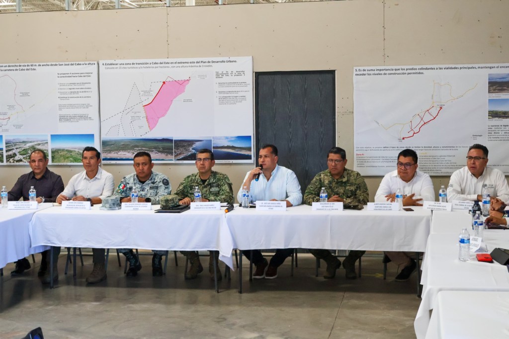 Los Cabos, Baja California Sur, a 30 de abril de 2025.- Como parte de las alianzas estratégicas con los diferentes sectores de la sociedad, el secretario General de Gobierno, José Saúl González Núñez, acompañado de los integrantes de la Mesa de Seguridad de Baja California Sur y del secretario General del Ayuntamiento de Los Cabos, Alberto Rentería Santana, sostuvo reunión de seguimiento con representantes de seguridad privada del ámbito hotelero de dicho municipio.