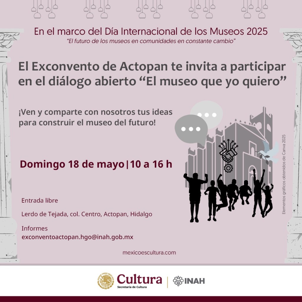 El Día Internacional de los Museos es una oportunidad para activar la imaginación, reconectar con la historia viva y construir futuros más sensibles e inclusivos. Toda la programación nacional se encuentra disponible en mexicoescultura.com y en las redes sociales de los recintos participantes.