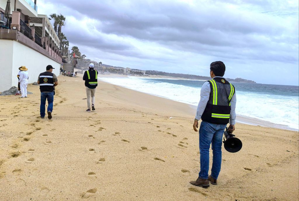 Los Cabos, Baja California Sur, a miércoles 02 de junio de 2025.- En atención a las indicaciones del alcalde de Los Cabos, Christian Agúndez Gómez y de la delegada de municipal, Karina de la O Uribe se llevó a cabo un operativo preventivo en diversas playas de Cabo San Lucas, con el objetivo de salvaguardar la integridad de turistas, residentes y trabajadores ante la presencia del huracán “Flossie”.