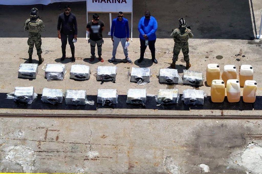 En el marco de la Estrategia Nacional de Seguridad, en una operación marítima encabezada por elementos de la Secretaría de Marina (Semar) a través de la Armada México en funciones de Guardia Costera, en coordinación con la Secretaría de la Defensa Nacional (Defensa), Fiscalía General de la República (FGR), Guardia Nacional (GN) y Secretaría de Seguridad y Protección Ciudadana (SSPC), detuvieron a cuatro personas y aseguraron aproximadamente 559 kilos de cocaína, 685 litros de combustible y una embarcación, en inmediaciones del Golfo de Tehuantepec, en costas de Oaxaca.