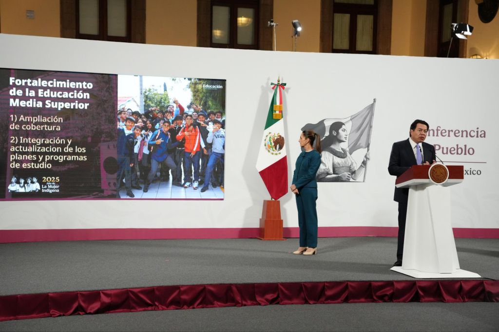 Al presentar la estrategia de Fortalecimiento de la Educación Media Superior durante la conferencia de prensa “La mañanera del pueblo”, en Palacio Nacional, el secretario de Educación Pública, Mario Delgado Carrillo, destacó que, junto con el impulso a los sectores emergentes y estratégicos, da solidez a una oferta educativa integral, pertinente y transformadora, con visión en el bienestar colectivo, como lo promueve la Nueva Escuela Mexicana (NEM).