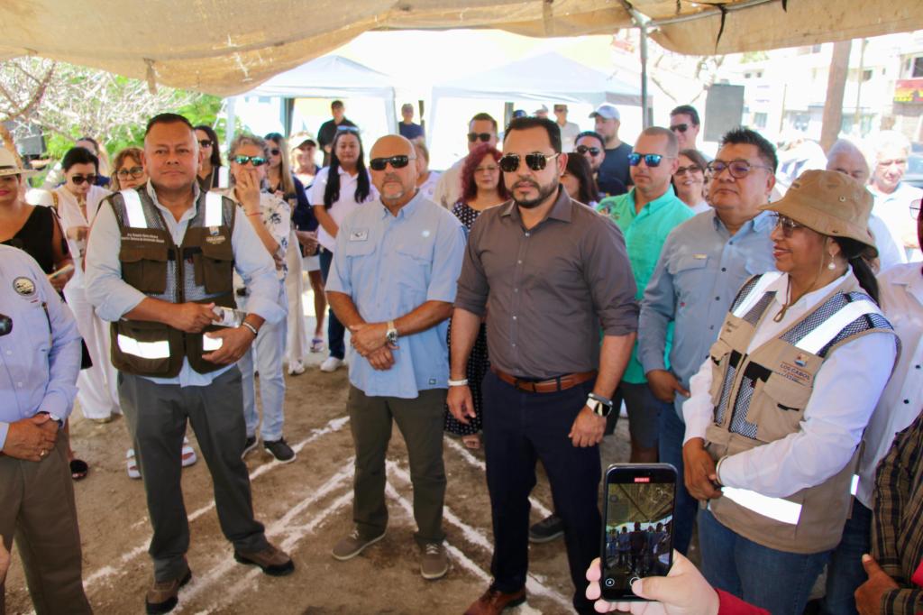 Los Cabos, Baja California Sur.- En un acto simbólico celebrado en la plaza Rotaria, ubicada en el bulevar Lázaro Cárdenas, esquina con Narciso Mendoza, en la delegación de Cabo San Lucas, el alcalde de Los Cabos, Christian Agúndez Gómez encabezó la colocación de la primera piedra del Reloj Monumental, proyecto impulsado por el torneo internacional de pesca deportiva Bisbee’s.