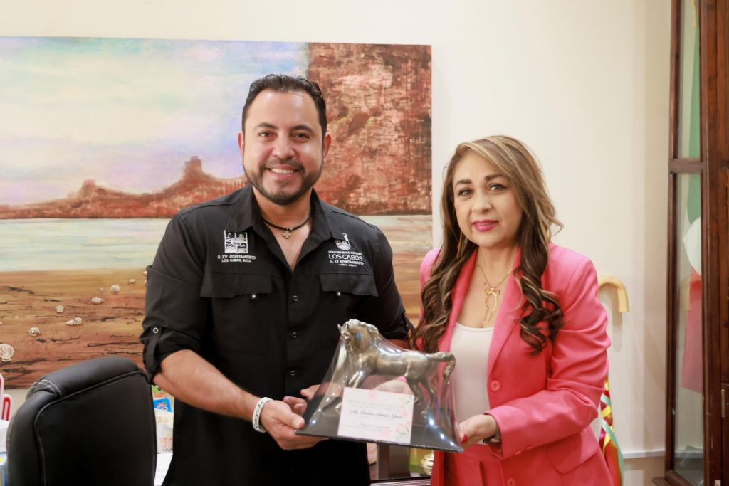 Los Cabos, Baja California Sur.- El presidente municipal de Los Cabos, Christian Agúndez Gómez hizo entrega simbólica de la donación de dos predios a la magistrada Claudia Cota Peña, presidenta del Tribunal Superior de Justicia y del Consejo de la Judicatura del Estado de Baja California Sur; los terrenos serán destinados a la construcción de Centros de Convivencia Familiar y Juzgados Familiares.