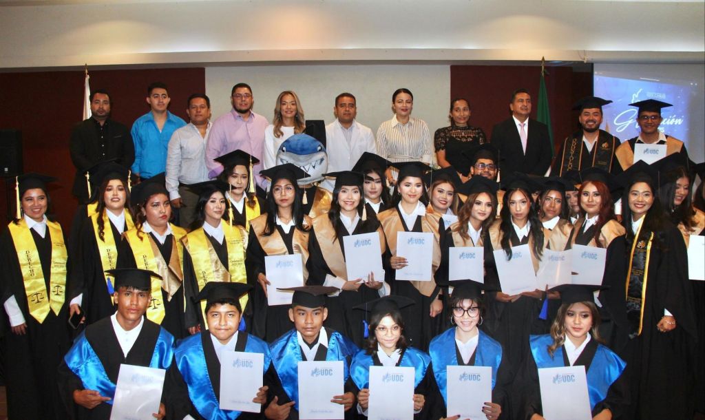 Por su parte, la directora de la UDC, Annika Carllen Estrada Aguiar, informó que en esta ocasión egresaron 25 estudiantes de licenciatura y 10 de preparatoria, todos ellos con una sólida preparación profesional y valores humanos que los distinguen.