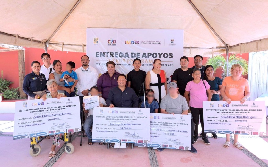 Los Cabos, Baja California Sur, a jueves 28 de agosto de 2025.- Con el compromiso por fortalecer una sociedad más justa e incluyente, la IV regidora y presidenta de la Comisión Edilicia de Derechos Humanos y Atención a Personas con Discapacidad, Luz Adriana Cosío Urbina, encabezó este miércoles la entrega de apoyos económicos a personas con discapacidad y sus familias, como parte de los programas “Talentos que Inspiran” y “Emprender sin Barreras”, implementados por el Instituto Municipal para el Desarrollo de Personas con Discapacidad (IMDIS) a cargo de Fernando Altamirano Valdez.