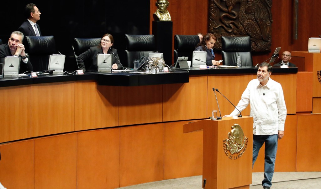 El senador Gerardo Fernández Noroña dio lectura al documento que presentó la Mesa Directiva y que fue aprobado por mayoría de la asamblea.