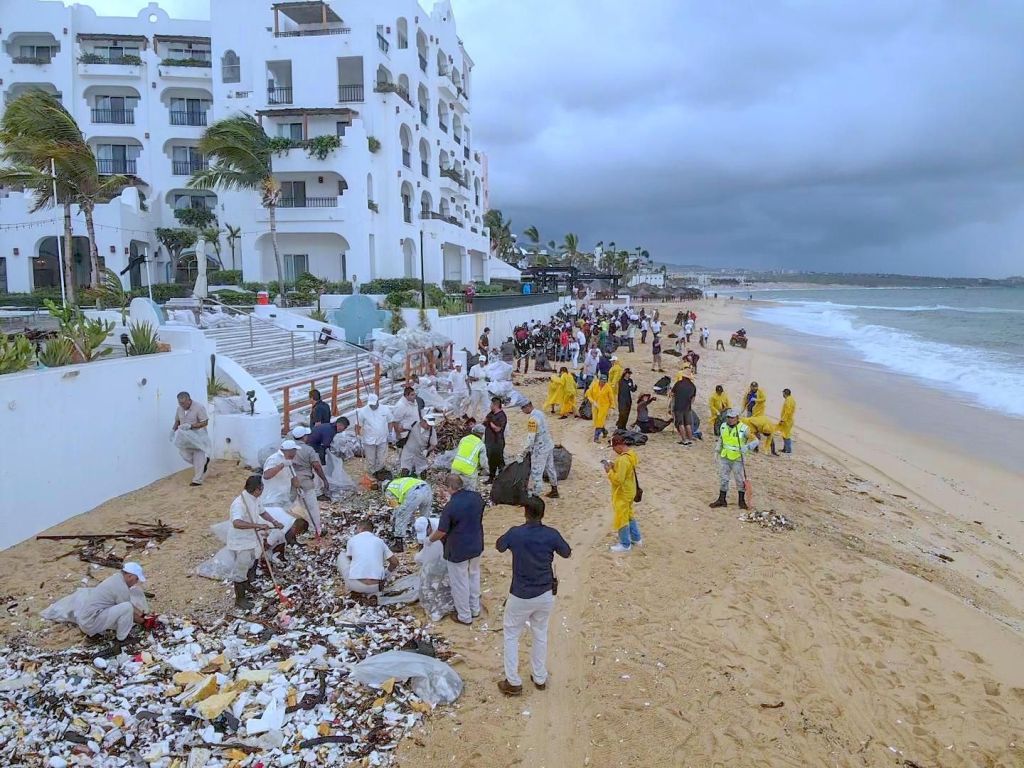 Los Cabos, Baja California Sur.- El presidente municipal de Los Cabos, Christian Agúndez Gómez, acompañado por la delegada de Cabo San Lucas, Karina de la O Uribe, encabezó una jornada de limpieza en la playa El Médano, con la participación de servidoras y servidores públicos de los tres órdenes de gobierno, asociaciones civiles y ciudadanía en general, como parte de las acciones de recuperación tras el paso del huracán Lorena.
