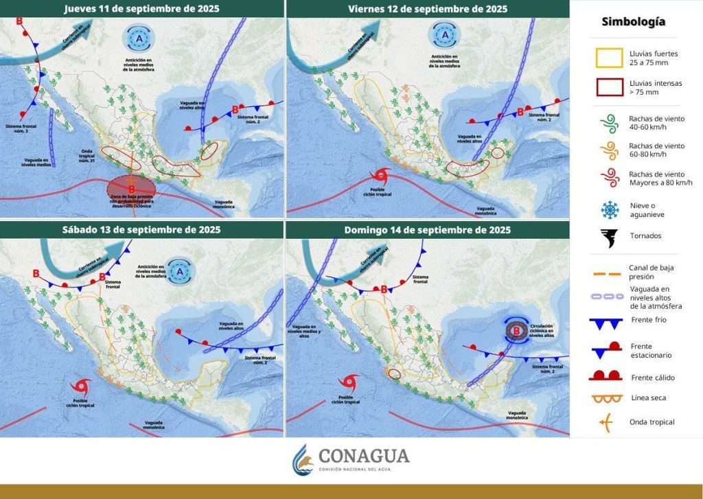 El Gobierno de México, a través de la Comisión Nacional del Agua (Conagua) y la Coordinación Nacional de Protección Civil (CNPC), hace un llamado a la población a tomar precauciones ante los 48 sistemas frontales que se prevén en el territorio nacional, durante la Temporada de Frentes Fríos 2025-2026.