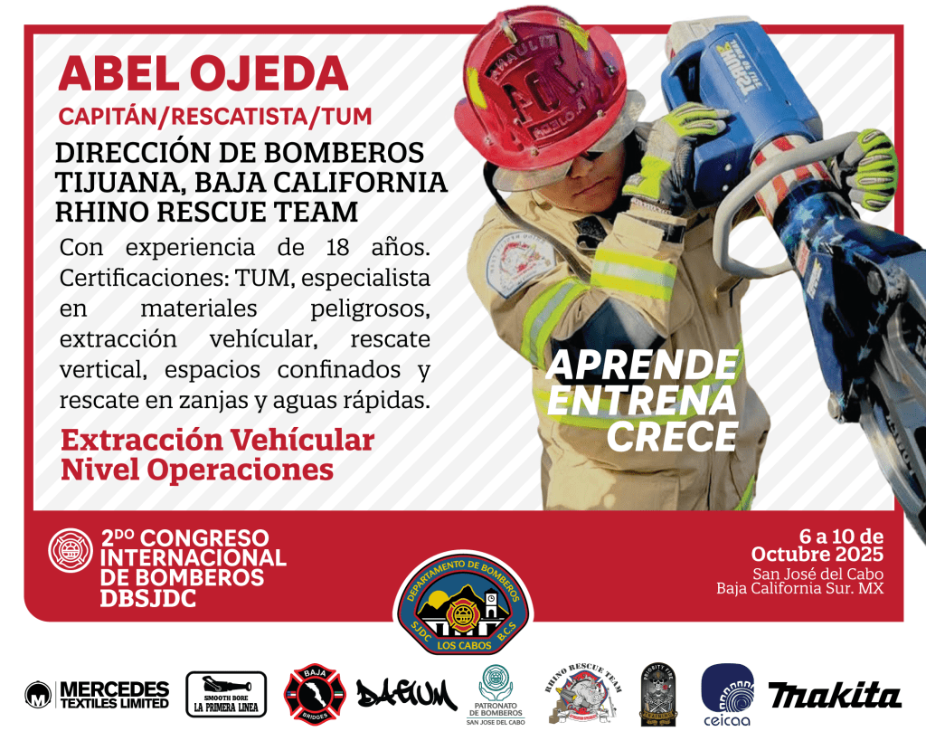 Los Cabos, Baja California Sur.- Del 6 al 10 de octubre, el Departamento de Bomberos de San José del Cabo y su patronato, con el respaldo del XV Ayuntamiento de Los Cabos, la iniciativa privada y la comunidad, llevarán a cabo la segunda edición del Congreso Internacional de Bomberos y Brigadistas 2025, que reunirá a 300 profesionistas del sistema de emergencias de México, Chile y Argentina.