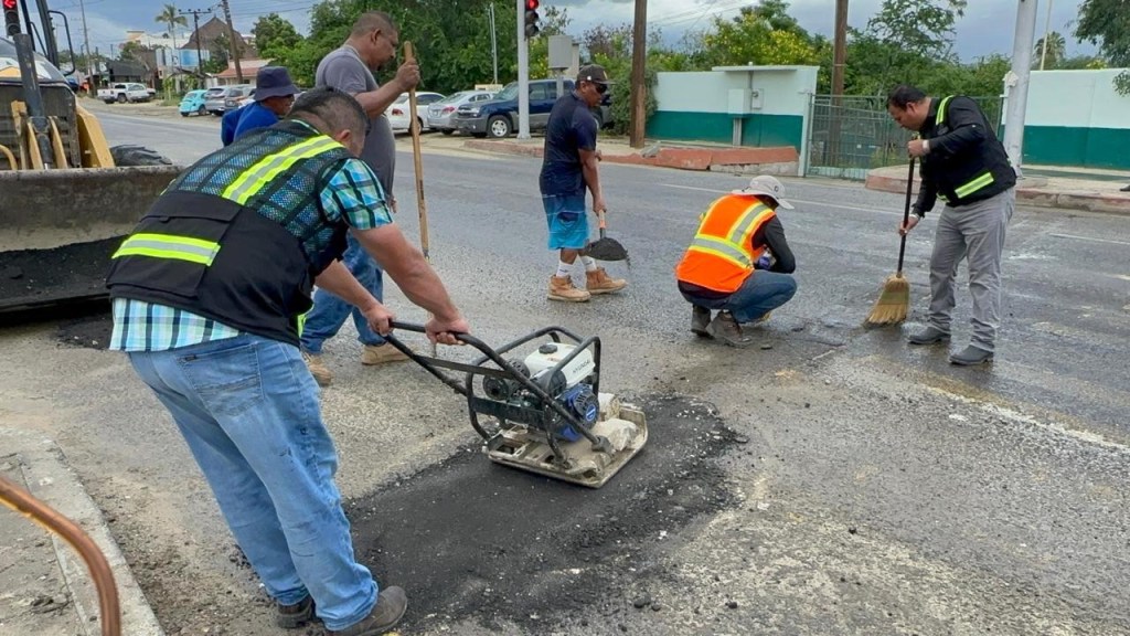Las labores de bacheo comenzaron en el tramo de la colonia El Rosarito y se extenderán hacia Guaymitas, hasta el aeropuerto de San José del Cabo para poder atender todos los baches que se encuentran en la carretera.