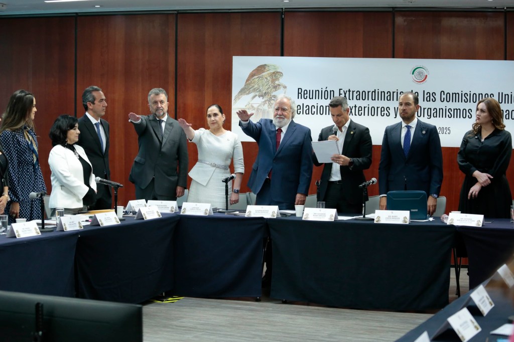 Las comisiones unidas de Relaciones Exteriores y de Organismos Internacionales aprobaron dos dictámenes que ratifican los nombramientos expedidos por la titular del Ejecutivo Federal, Claudia Sheinbaum Pardo, en favor de Alejandro Encinas Rodríguez, Laura Elena Carrillo Cubillas, ante la Organización de los Estados Americanos (OEA), y Agencias de la Organización de las Naciones Unidas, respectivamente.