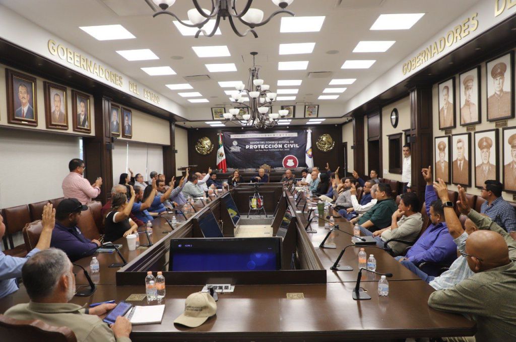 La Paz, Baja California Sur, a 13 de octubre de 2025.- Representantes de diversas empresas locales se reunieron con el gobernador del estado, Víctor Manuel Castro Cosío, para acordar la jornada “Constructores Unidos por Sudcalifornia”, un plan de trabajo conjunto que permitirá atender los daños ocasionados a la infraestructura vial por las recientes lluvias.