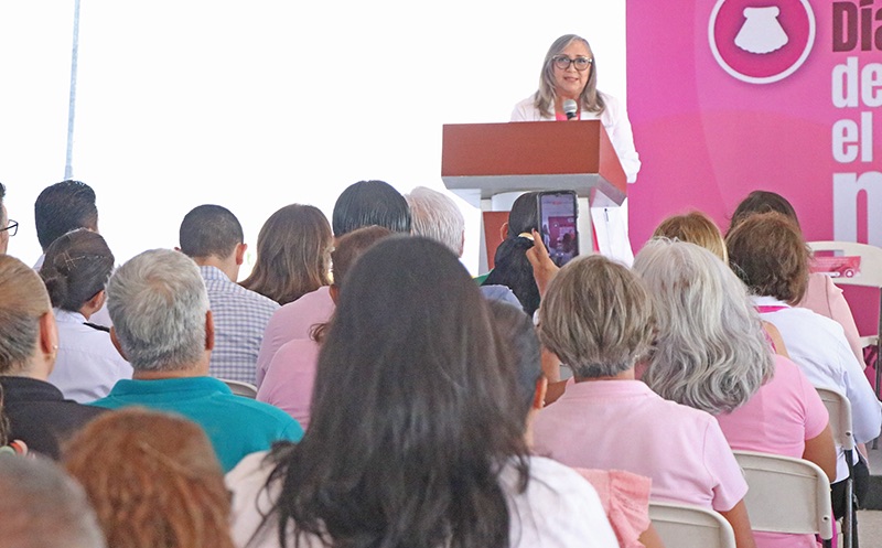 La Paz, Baja California Sur, a 21 de octubre de 2025.- Durante la administración que encabeza el gobernador Víctor Manuel Castro Cosío, se ha fortalecido el equipamiento para la detección temprana del cáncer de mama, una de las enfermedades oncológicas con mayor incidencia en Baja California Sur, señaló la secretaria de Salud, Ana Luisa Guluarte Castro, al encabezar el acto por el Día Mundial de la Lucha contra el Cáncer de Mama.