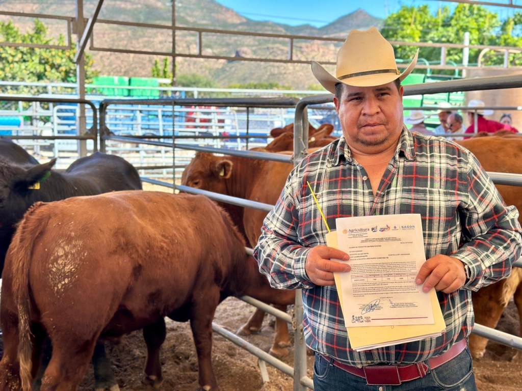 La Secretaría de Agricultura y Desarrollo Rural (AGRICULTURA) y el Gobierno del Estado de Durango realizaron la segunda entrega de sementales bovinos a ganaderas y ganaderos de pequeña y mediana escala, como parte del Programa Integral para la Producción de Carne de Alta Calidad que impulsa la Presidenta Claudia Sheinbaum Pardo.