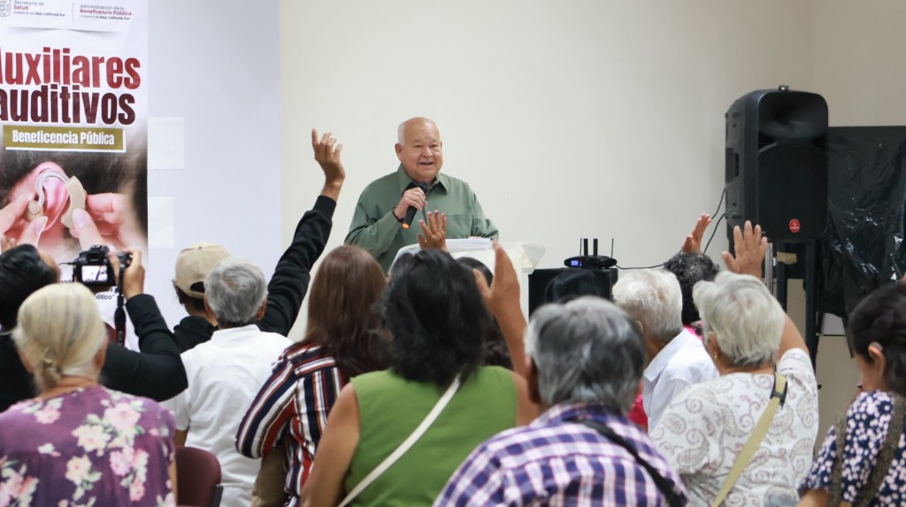 La Paz, Baja California Sur, a 10 de noviembre de 2025.- El gobernador Víctor Manuel Castro Cosío encabezó la entrega simbólica de auxiliares auditivos que beneficiarán a habitantes de los cinco municipios, a través de un programa implementado por la Beneficencia Pública. Esta acción refleja el compromiso de la Cuarta Transformación con la inclusión y la justicia social.