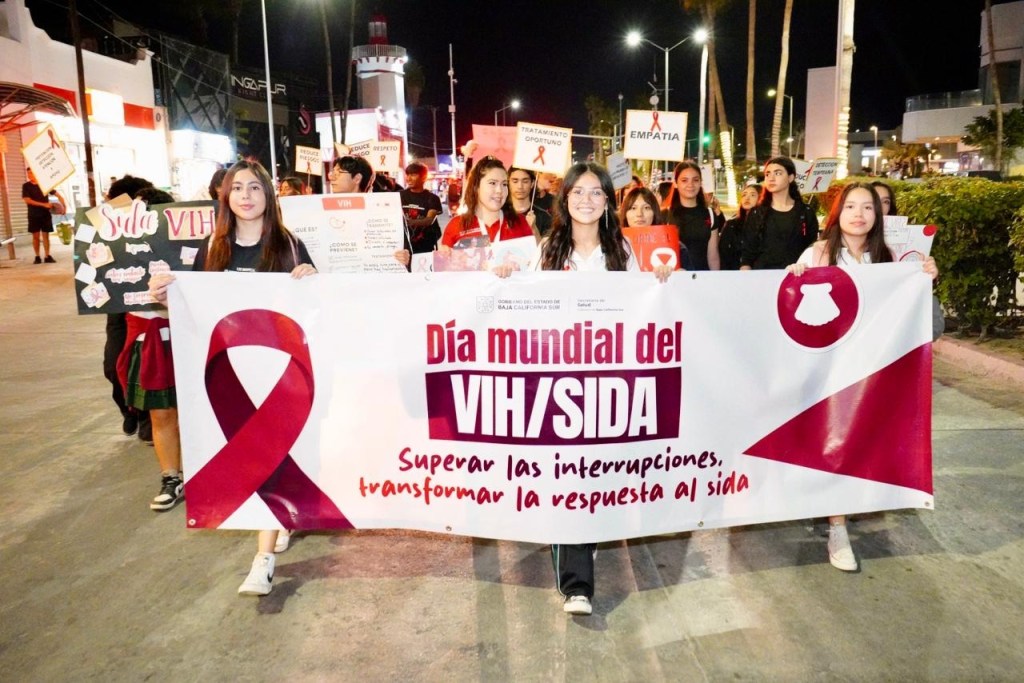 Los Cabos, Baja California Sur.- Con la participación del personal del XV Ayuntamiento de Los Cabos, instituciones educativas y diversas dependencias gubernamentales, este 01 de diciembre se llevó a cabo la Marcha Conmemorativa por el Día Mundial de la Lucha contra el VIH/SIDA, bajo el lema “Superar las interrupciones, transformar la respuesta al sida”.