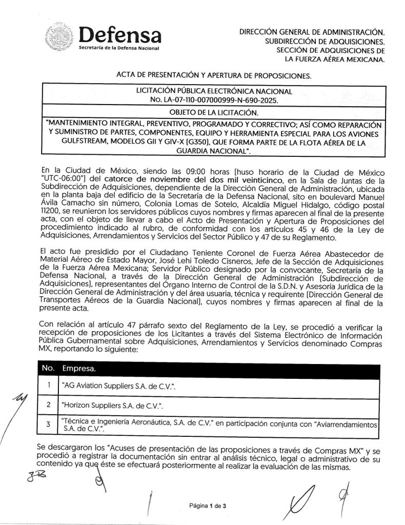Ciudad de México, a 22 de diciembre de 2025.- Continuando con una investigación de MDP, verificamos que el pasado 22 de septiembre nos confirmó que al ex general Enrique Vallín Osuna lo investigaban, días después fue destituido en la #AFAC. Continuamos con la investigación y nos encontramos que su gente sigue autorizando y firmando licitaciones millonarias a favor de empresas inexistentes y sin las capacidades necesarias para realizar los trabajos de mantenimiento y operatividad de los equipos aéreos del Gobierno federal, a los que hay que atender luego de haber prestado a los estados afectados por las inundaciones ese año.