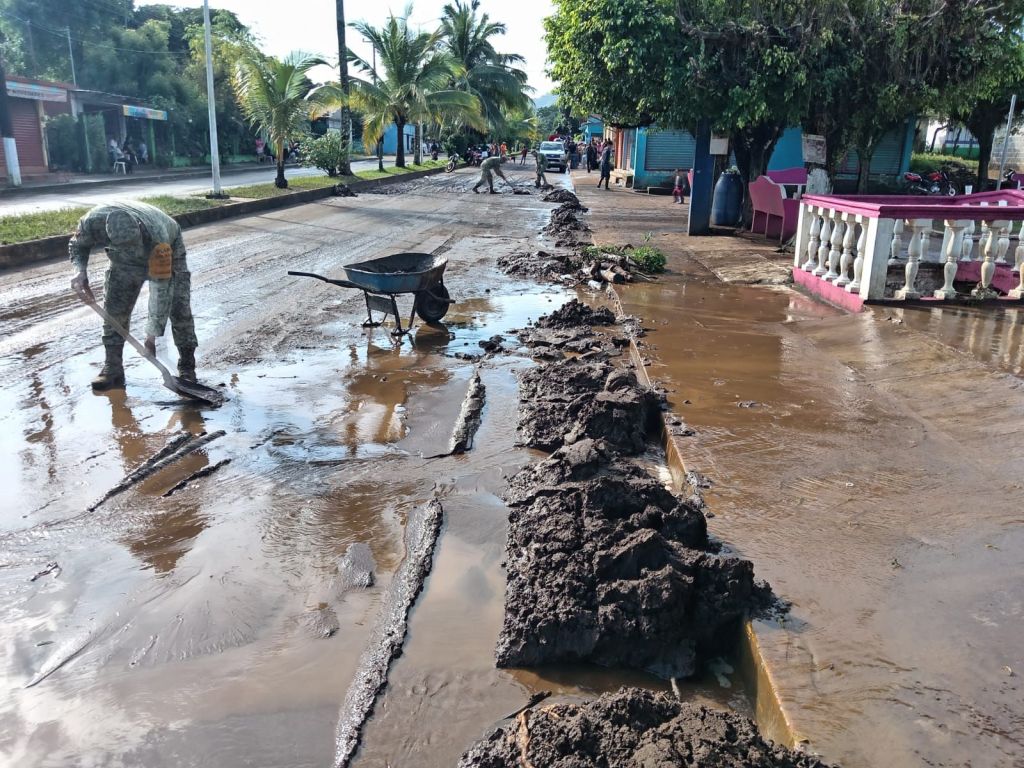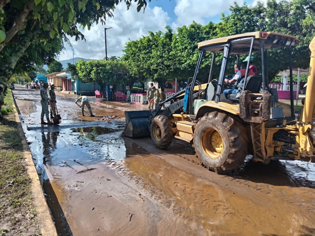 De manera complementaria, en el municipio de Saltabarranca, tras el desbordamiento del río San Agustín que afectó caminos de nueve comunidades, personal militar apoya en el traslado y entrega de 169 despensas a familias de la comunidad El Ciruelo.