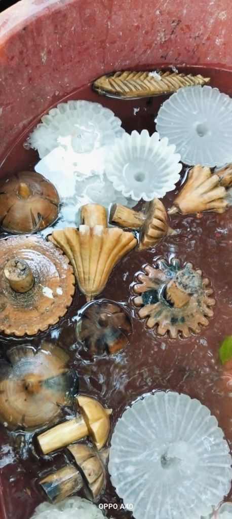 Las flores escamadas se elaboran por pétalo, mediante moldes de madera tallados a mano, que se humedecen antes de sumergirse en la cera caliente. “Una rosa puede llevar hasta cuarenta pétalos”, detalla. En el caso de los sirios, el trabajo es aún más minucioso: las capas de cera se vierten sobre un pabilo de algodón, con cuidado del grosor y la forma durante semanas de trabajo continuo.