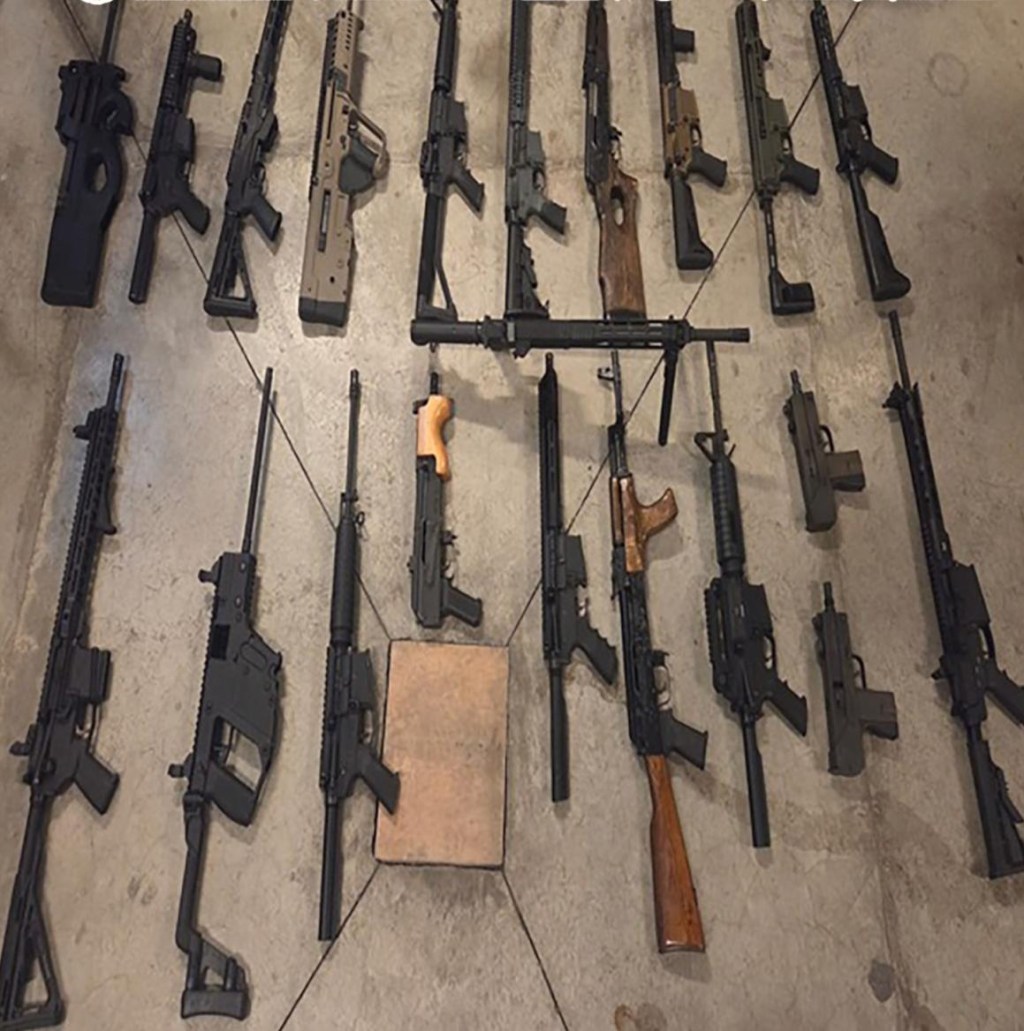 Al efectuar una inspección de seguridad, hallaron una pistola en el asiento del pasajero y en la cajuela cuatro maletas que contenían las armas de fuego.