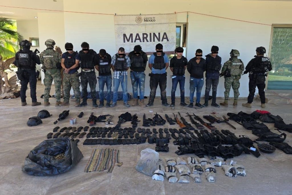 Resultado de los trabajos de reforzamiento de seguridad en el estado de Sinaloa, elementos de la Secretaría de Marina (Semar) a través de la Armada de México, junto con Secretaría de la Defensa Nacional (Defensa), Fiscalía General de la República (FGR), Guardia Nacional (GN) y Secretaría de Seguridad y Protección Ciudadana (SSPC), detuvieron a nueve personas, aseguraron armamento, municiones y vehículos.