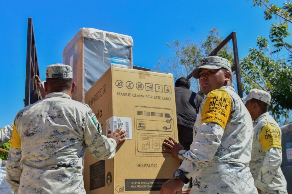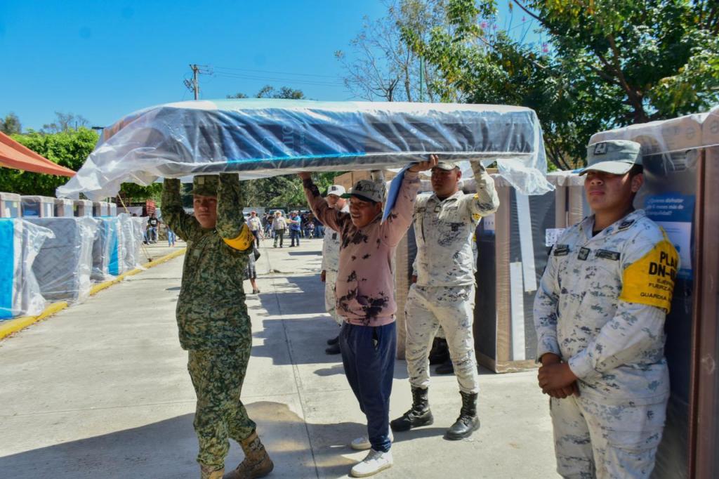 Lo anterior se realizó con el apoyo de 366 efectivos militares, entre jefes, oficiales y personal de tropa de las Regiones Militares VI y VII, quienes utilizaron 19 vehículos militares, 5 cajas secas y 10 camiones Torton para transportar los enseres, que incluyeron estufas, refrigeradores, ventiladores, licuadoras, utensilios de cocina y colchones, entre otros productos.